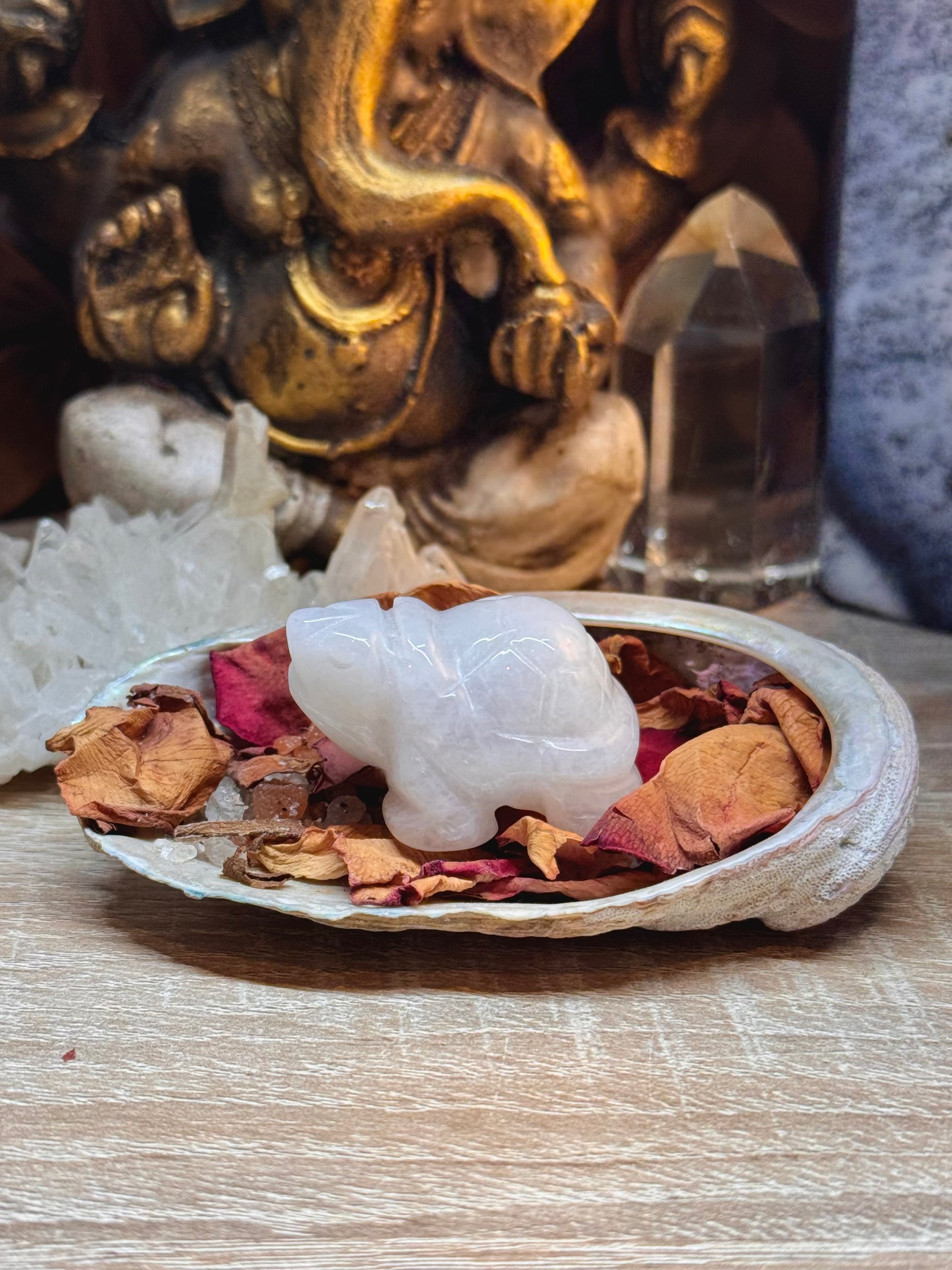 Kunzite, Agate indienne, Agate mousse, Howlite, Cristal de roche, Aventurine verte, Agate Crazy lace, Améthyste, Oeil de tigre Jaspe orbiculaire, Aventurine bleue, Quartz rose, Aventurine orange, Jaspe vert, Opaline (pierre de synthèse)