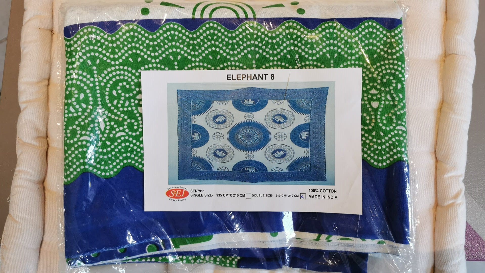 Tenture éléphant bleu/vert