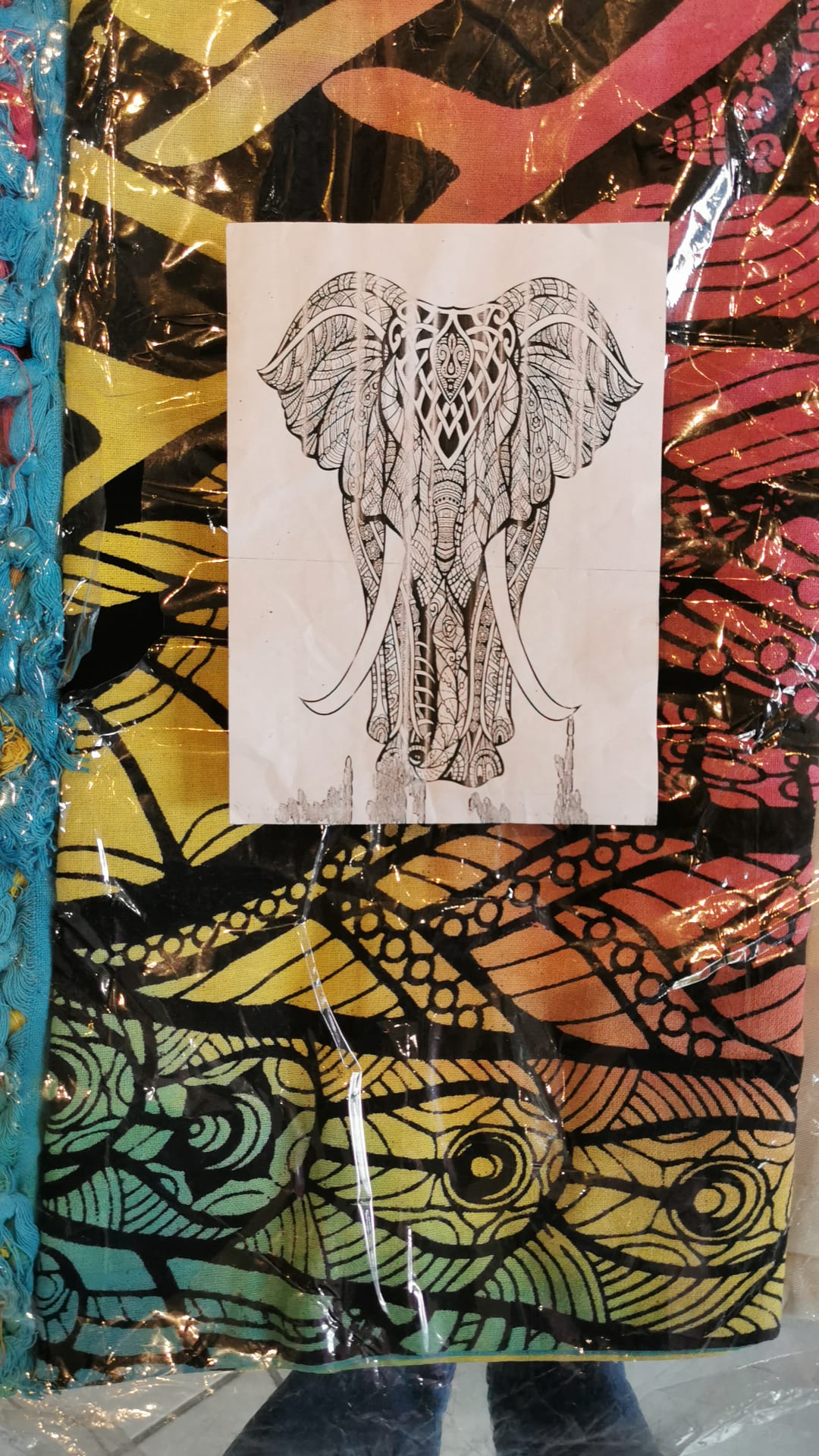 Cette très belle tenture à motif éléphant vous séduira par la magie des couleurs et de ses détails.